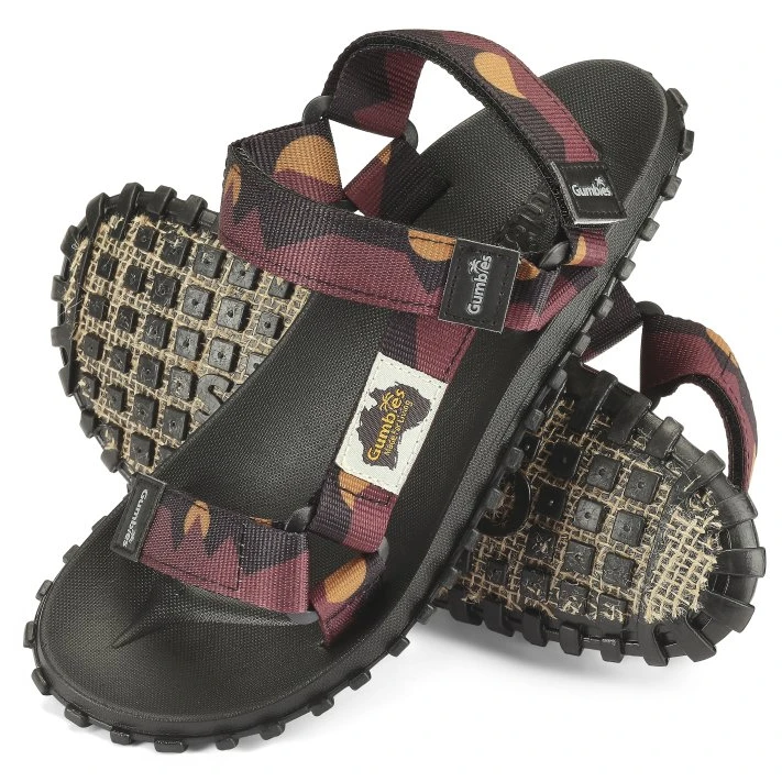 Odolné sandály Gumbies Scrambler Burgundy a Orange jsou komfortní a ekologické.