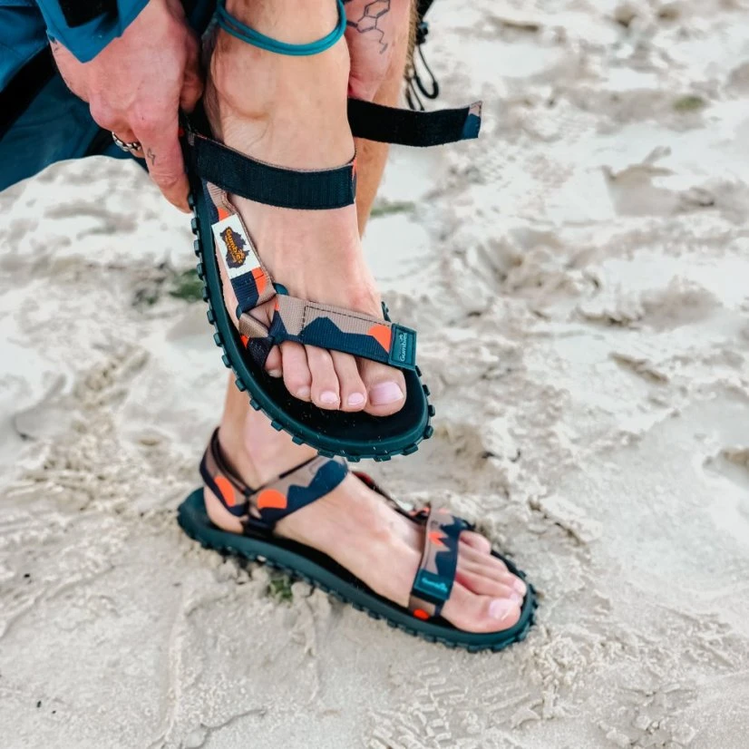 Odolné sandály Gumbies Scrambler Khaki a Orange jsou komfortní a ekologické.