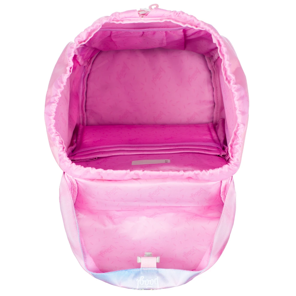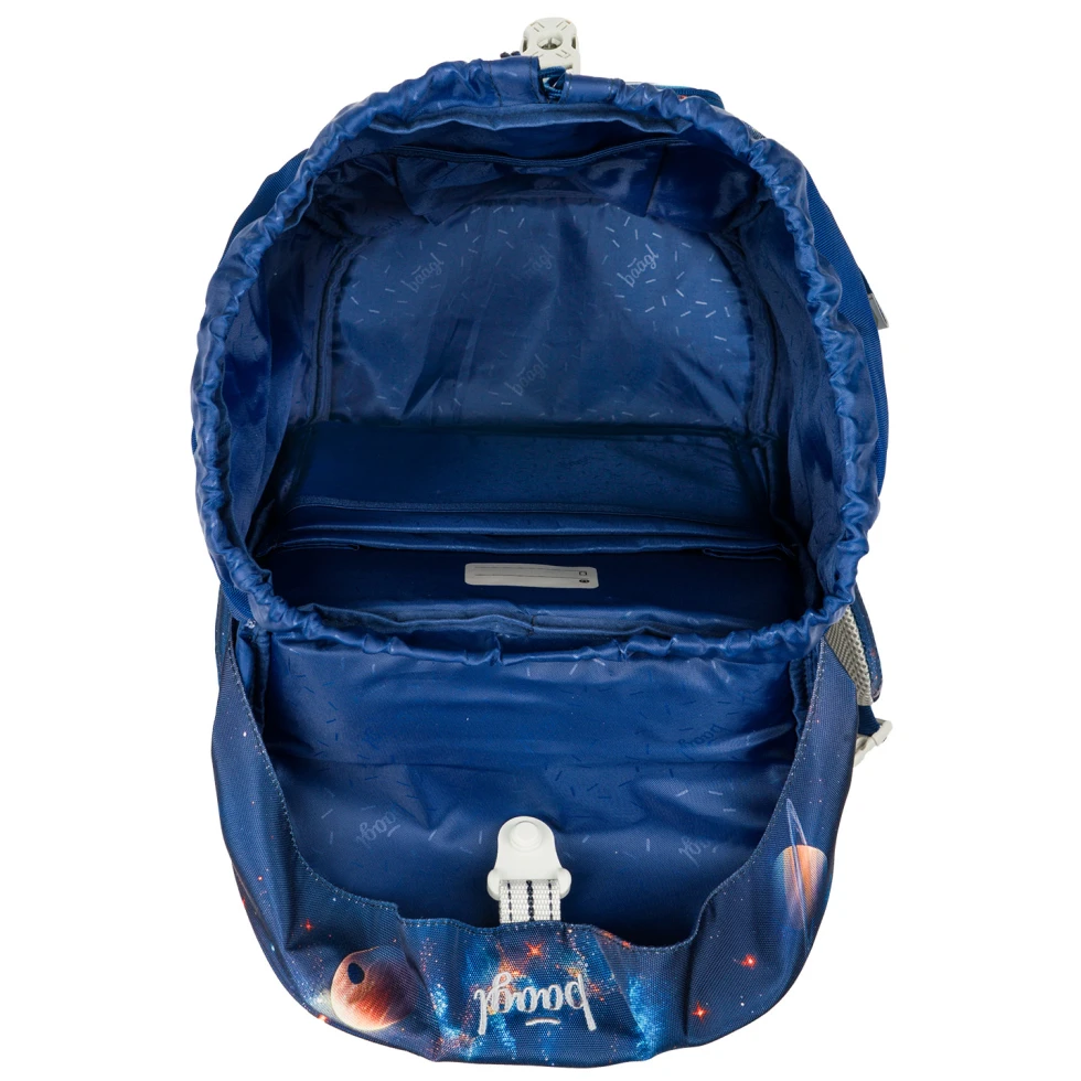 Manipulaci s batohem usnadňuje intuitivní systém zapínání Magnetic Click. Otevírání i zavírání pomocí magnetické přezky hravě zvládne každý prvňáček bez zbytečného zdržování. Vnitřní uspořádání nabízí jednu prostornou komoru, která je doplněna o praktickou kapsu a gumičku na zádové straně. Tento systém poslouží ke snadnému uchycení desek a bezproblémové organizaci všech věcí.