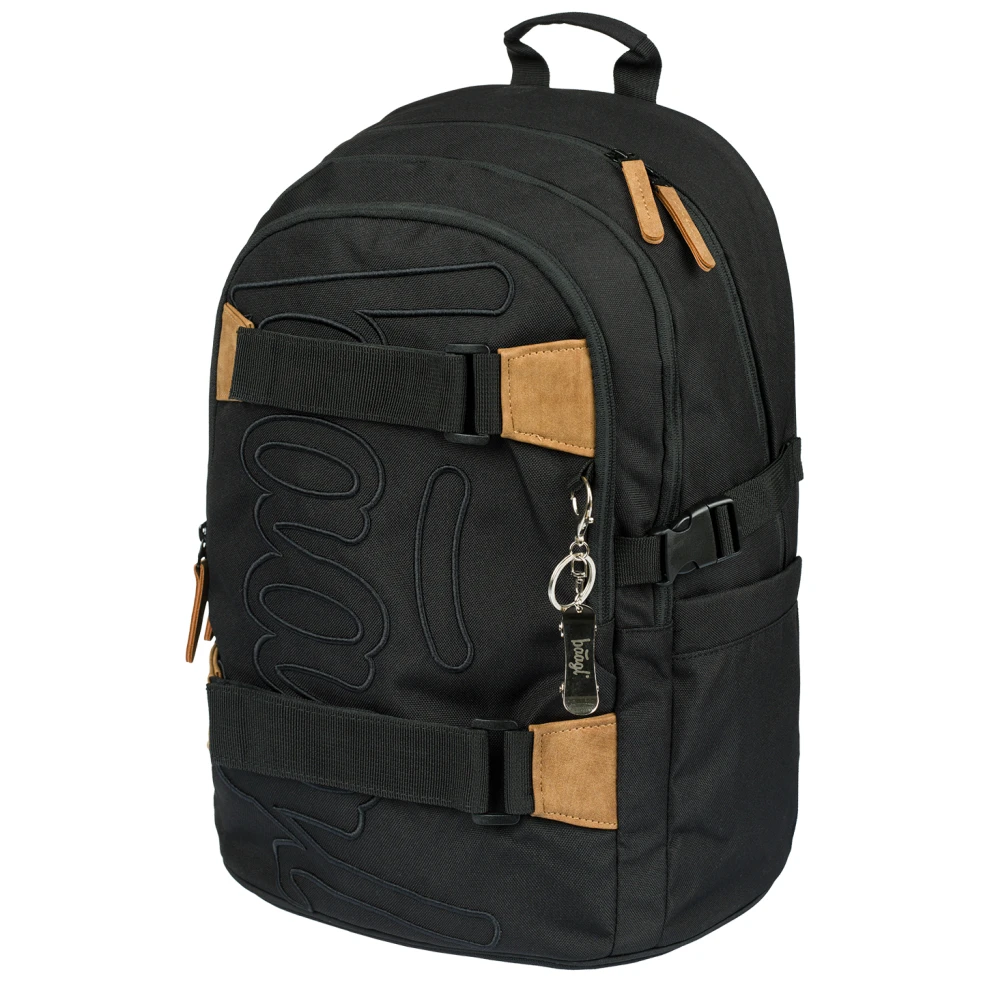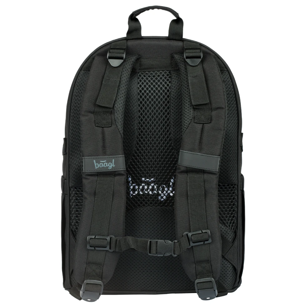 Ergonomický školní batoh Skate od značky Baagl je vhodný pro děti od 3. třídy 1. stupně ZŠ až po 2. stupeň ZŠ. Má kapsu pro notebook a popruhy pro skateboard.