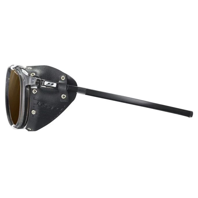 Odnímatelné kožené boční štíty jsou nejen funkční, ale i stylové. Už po generace chrání oči horolezců a dodávají brýlím ikonický vintage vzhled.