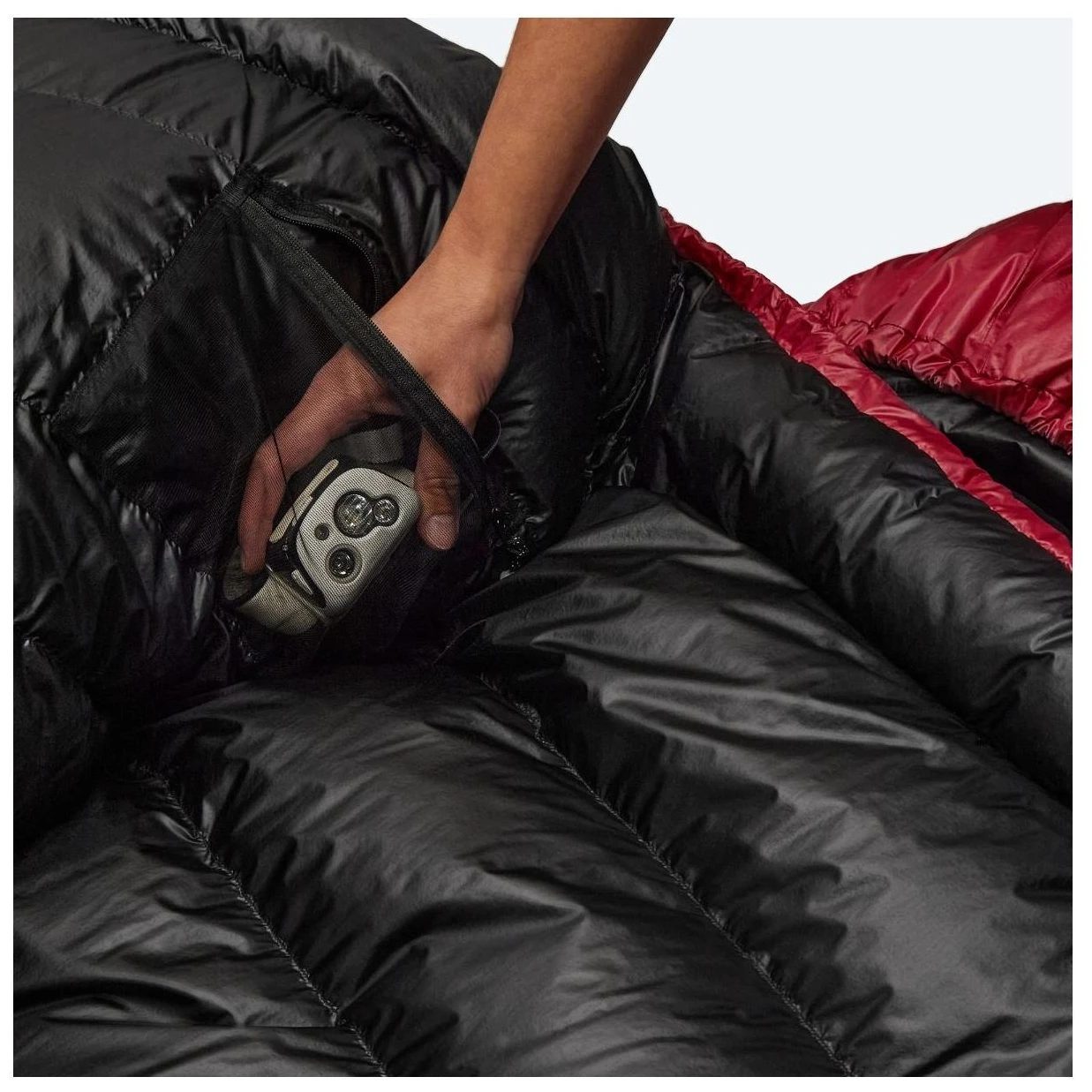 - síťovaná kapsička se zipem uvnitř spacího pytle