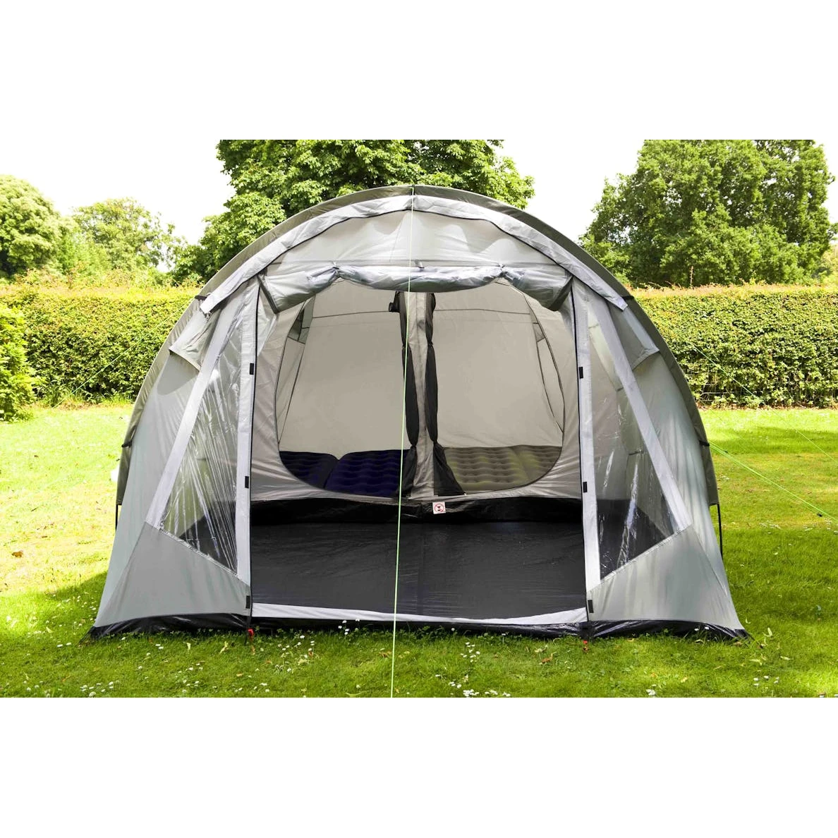 Dvě ložnice každá jednotlivá ložnice pro 2 osoby poskytuje soukromí i flexibilitu. Přepážku mezi ložnicemi lze odstranit a tak vytvořit jednu větší místnost. Přední vchod lze zdvižením dveří přeměnit v krátký přístřešek. Dodává se včetně sady tyčí pro verandu, která vytváří další plochu, kde lze odpočívat, vařit, nebo se schovat před deštěm či sluncem.