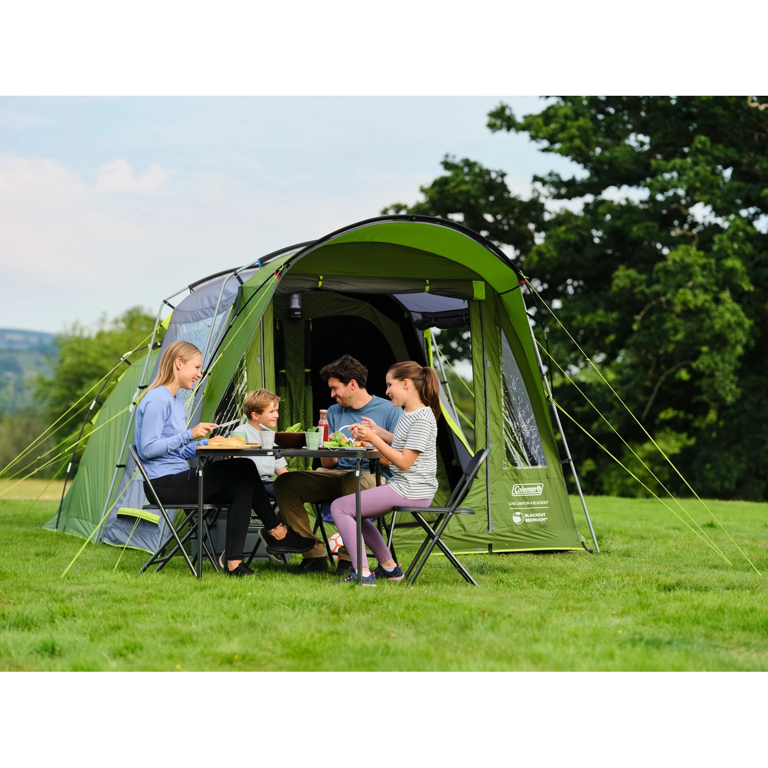 Prémiový rodinný stanOak Canyon 4 Blackout Coleman s robustní ocelovou konstrukcí, která zajišťuje maximální stabilitu i v náročných podmínkách. Praktická stříška kryjící vchod poskytuje ochranu před deštěm i sluncem, zatímco velké panoramatické okno v hale propouští dostatek světla a nabízí skvělý výhled. Díky patentované technologii BlackOut Bedroom® si užijete klidný spánek bez rušivého světla.