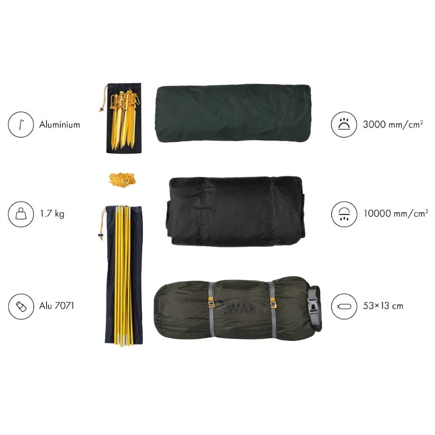 Ultralehký turistický stan Warg Atak 2 je určen pro dvě osoby a díky promyšlené duralové konstrukci se jedná o nejlehčí samonosný stan od značky Warg. Nízké váhy bylo dosaženo díky nylonovému tropiku se silikonovým zátěrem, které je lehčí, pevnější a odolnější proti oděru než polyester. Výborná stabilita a odolnostve větru je zajištěna pomocí jednoho nosného prutu a jeho rozvětvením na tři dílčí pruty.