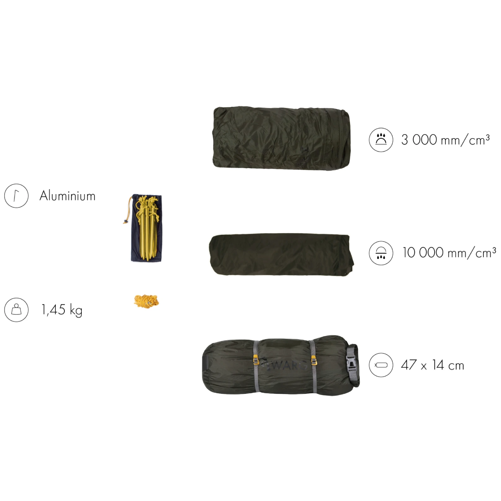 1,2 kila včetně moskytiéry, navečer svítící jezdci na zipech a vychytané kolíky z Alu a s okem na vytažení ze země.. paráda..