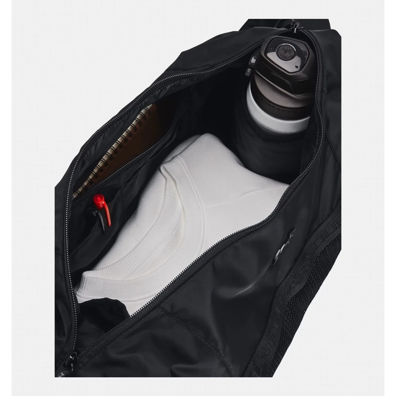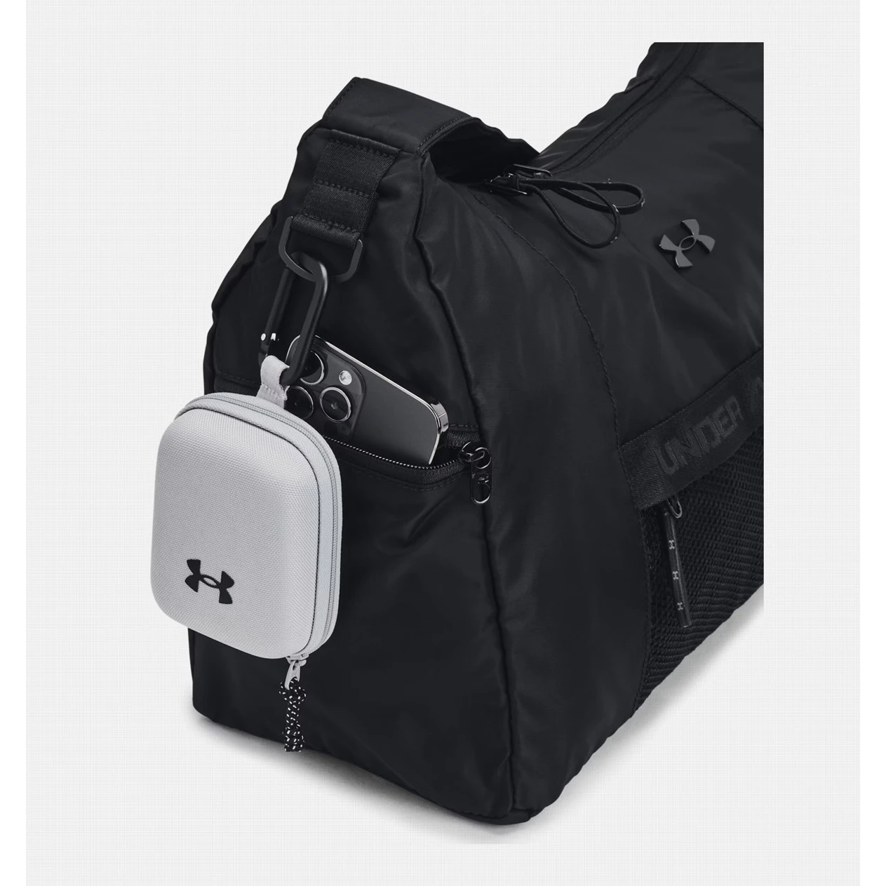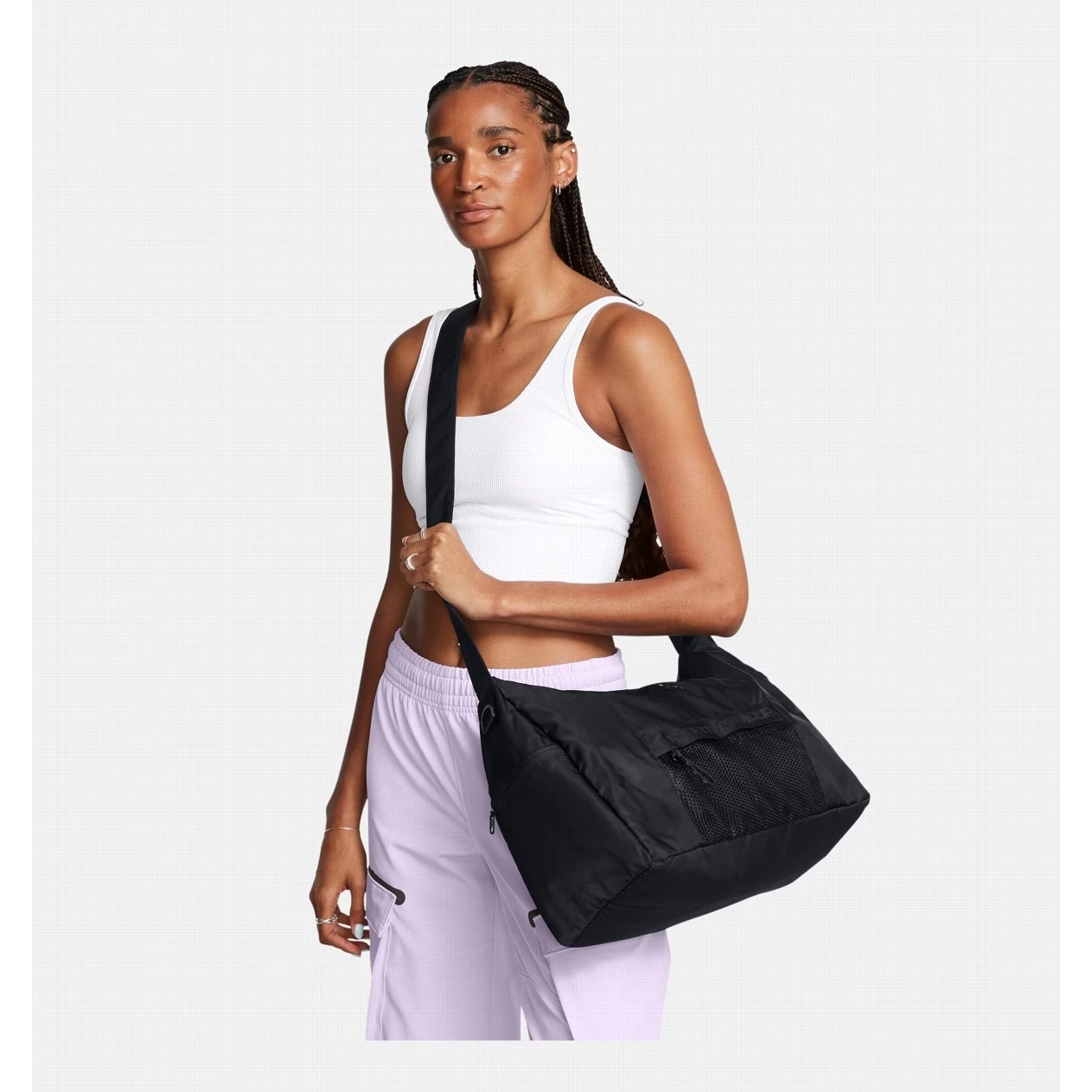 Dámská taška Studio Slouchy Duffle od značky Under Armour s velkou hlavní přihrádkou na zip s vnitřními kapsami na láhev s vodou, kapsou na zip a organizačními kapsami. Praktické elastické popruhy, které Vám usnadní přenášení podložky na jógu nebo pěnového válce. Zip opatřený gumičkou, kterou lze použít třeba do vlasů.