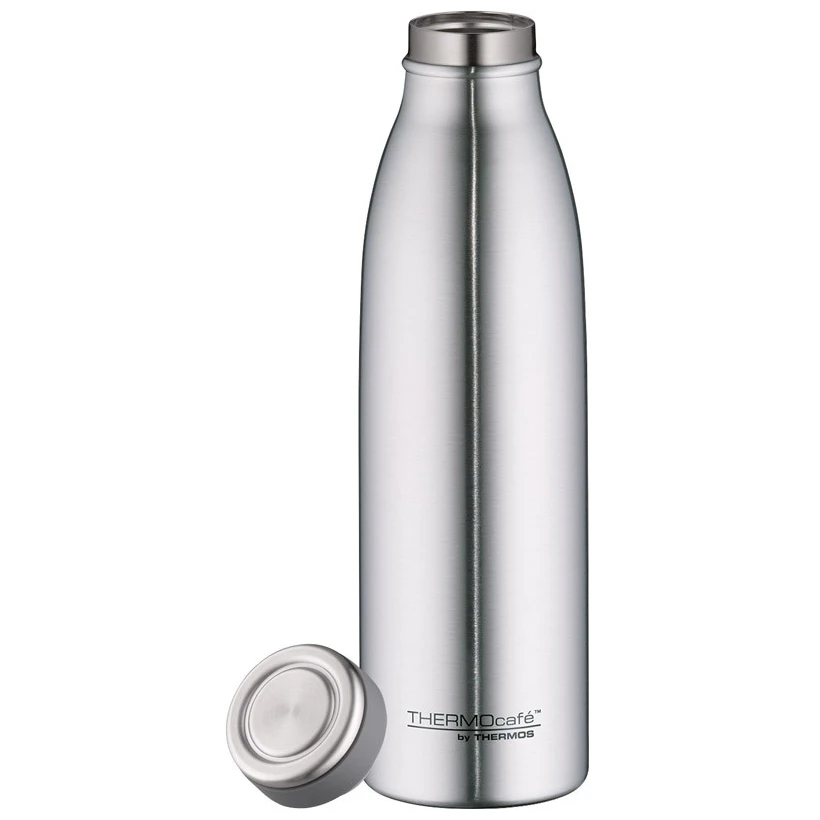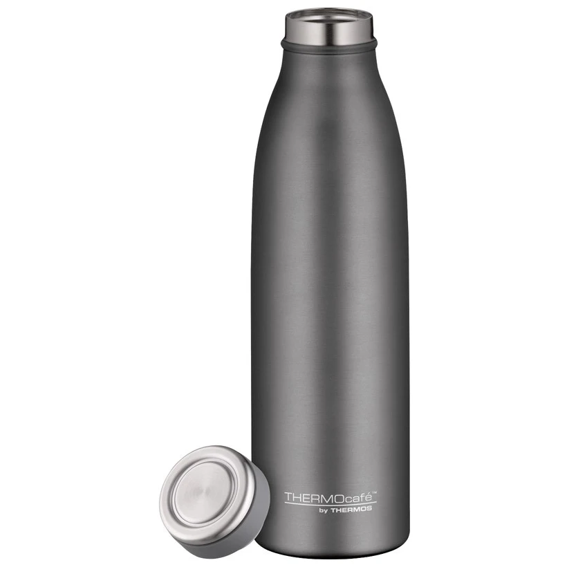Thermos Thermocafé 500 ml je nerezová termoláhev s dvoustěnnou vakuovou izolací, navržená pro každodenní používání doma i na cestách. Větší objem poskytne dostatek nápoje na delší přesuny, pracovní den i výlety do přírody, přičemž úzké hrdlo umožňuje pohodlné pití přímo z láhve bez nutnosti použití šálku.