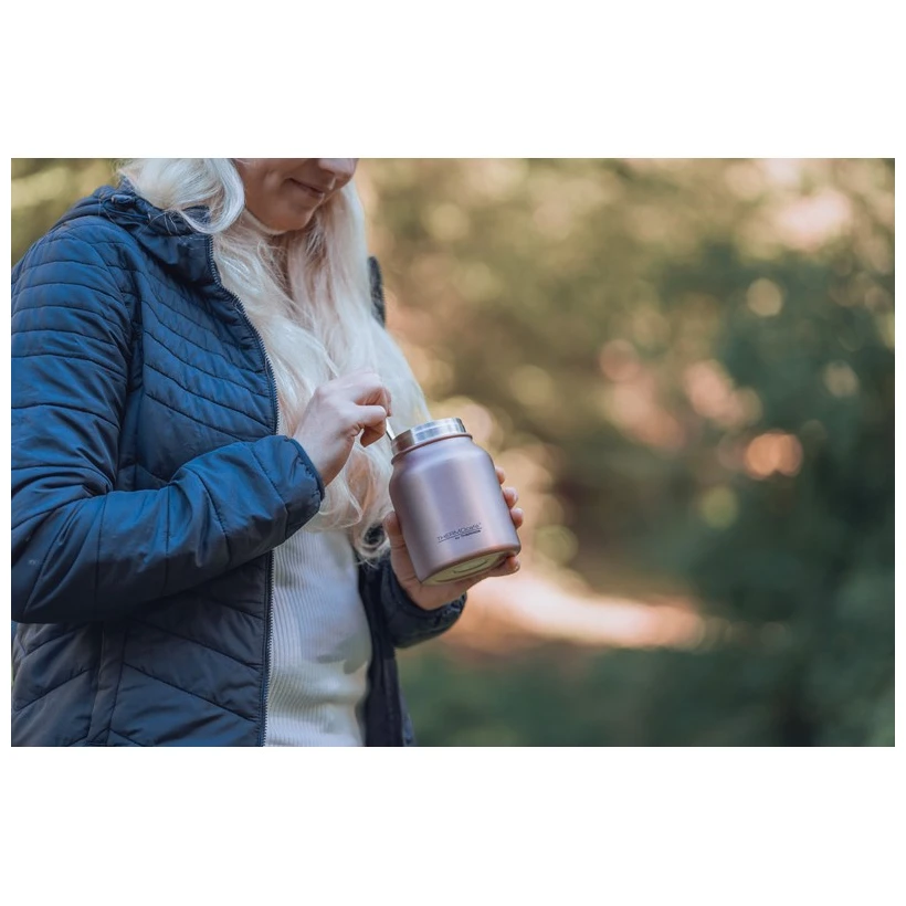 Tělo nádoby je vyrobeno z odolné potravinářské nerezové oceli, která je hygienická, neabsorbuje pachy ani chutě a zajišťuje dlouhou životnost při každodenním používání. Odnímatelné těsnění umožňuje kompletní rozebrání a důkladné vyčištění všech částí. Termoska je zcela bez obsahu BPA.