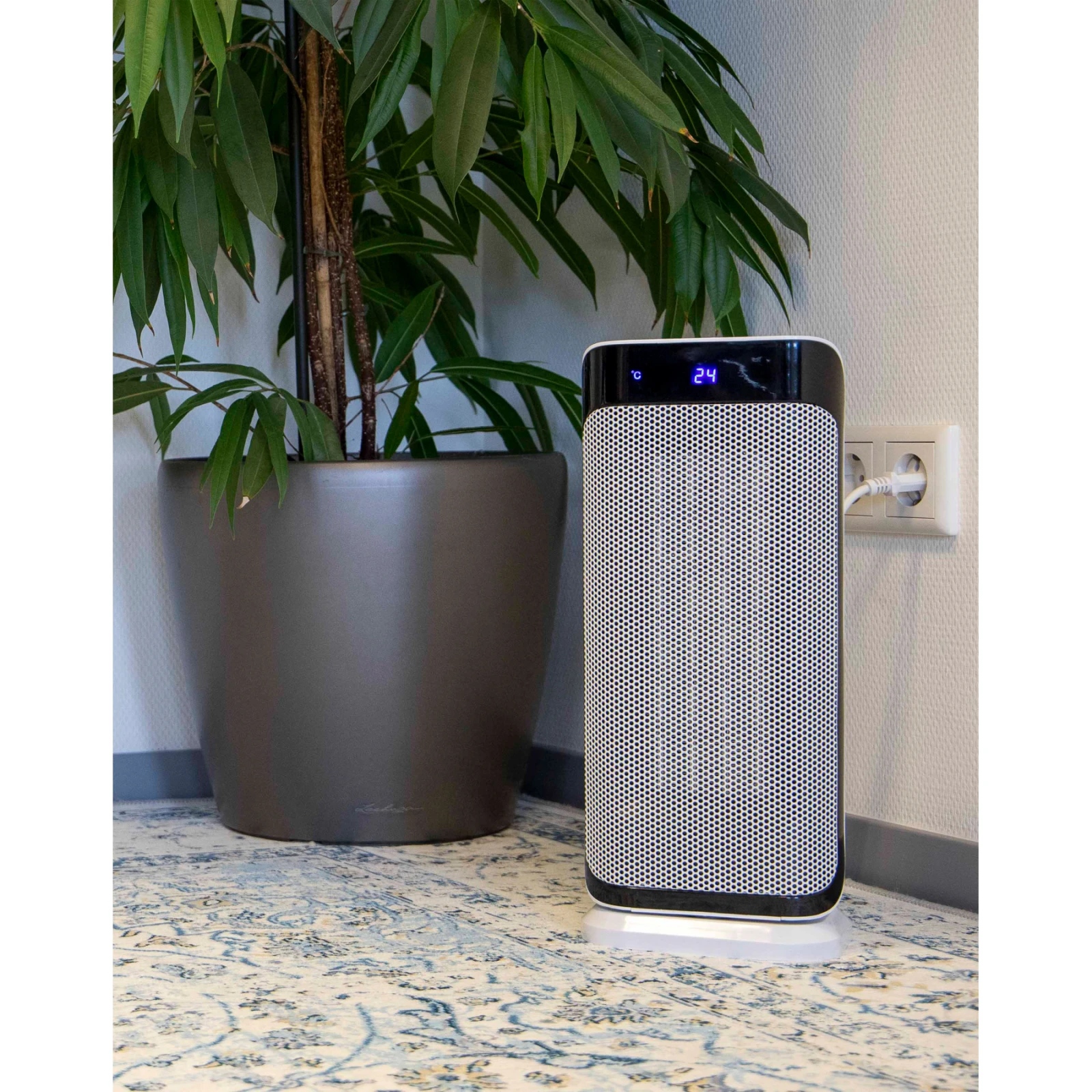 Tento keramický ohřívač je vybaven LCD displejem, dálkovým ovládáním a funkcí časovače, díky čemuž je ovládání jednoduché a pohodlné. Nechybí ani bezpečnostní funkce jako ochrana proti přehřátí a ochrana proti převrácení, které vám zajistí klid i při dlouhodobém používání.