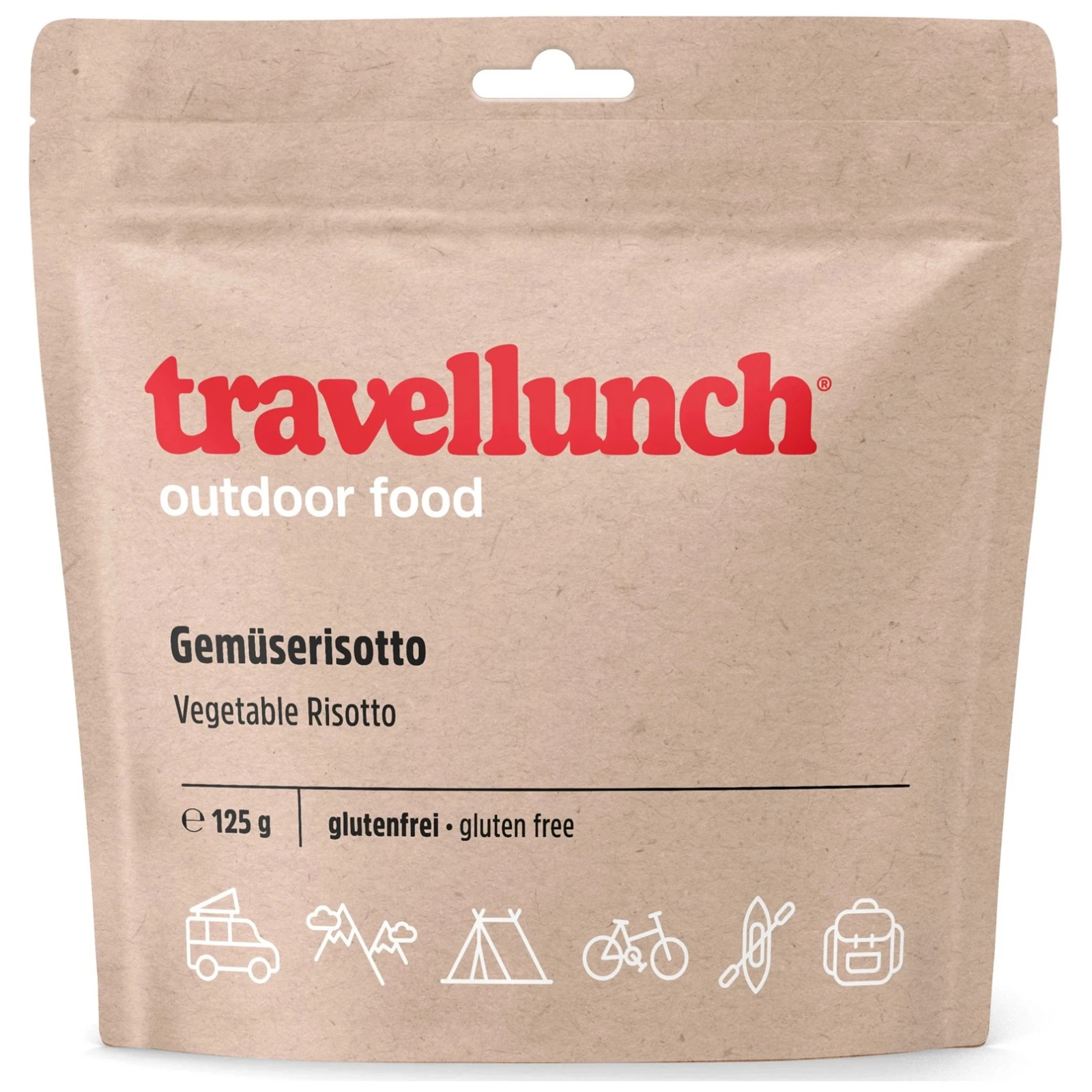 Profesionální dehydrovaný bezlepkový vegetariánský pokrm Travellunch Zeleninové rizoto se zeleninou obsahuje všechny důležité látky pro lidské tělo i při extrémním výkonu a navíc i výborně chutná.