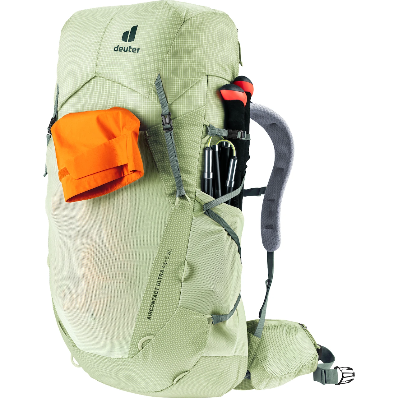 Turistický batoh Aircontact Ultra 45+5 SL od značky Deuter je batoh vyrobený z certifikované tkaniny bluesign®, zredukovaný na to nejpodstatnější. Má nízkou hmotnost, snadno nastavitelný zádový systém a pohodlnou ergonomickou bederní podložku. Součástí batohu jsou praktická poutka a variabilní popruhy na upevnění GPS, mapy, karimatky či stanu. Dále jistě uvítáte i možnost odejmutí horního nastavitelného víka, čímž snížíte celkovou hmotnost batohu.