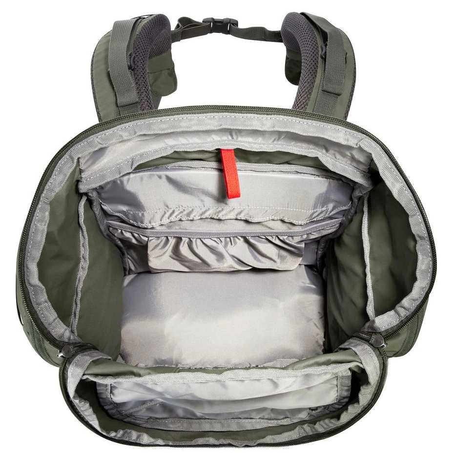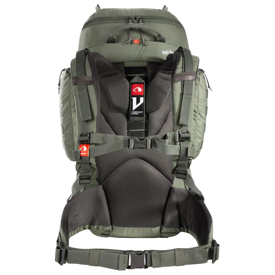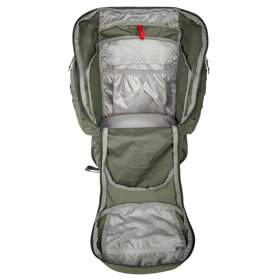 Hlavní komora je plně rozepínatelná, což výrazně usnadňuje balení a přístup k vybavení. Samostatná spodní přihrádka se hodí na spacák nebo oddělení špinavého oblečení. Batoh nabízí také dvě prostorné boční kapsy na zip a za nimi otevřený kanál pro uložení tyčí od stanu. Praktické poutka na víku, přední i boční straně umožňují připevnit další výbavu, zatímco kompresní popruhy pomáhají stabilizovat náklad.
