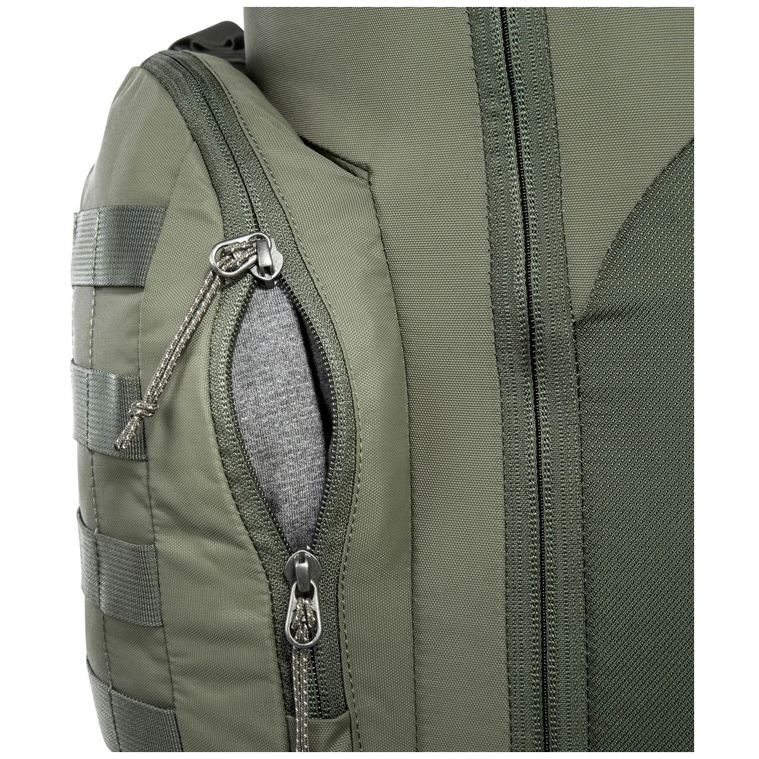 - dvě boční kapsy na zip a otevřený kanál pro tyče stanu