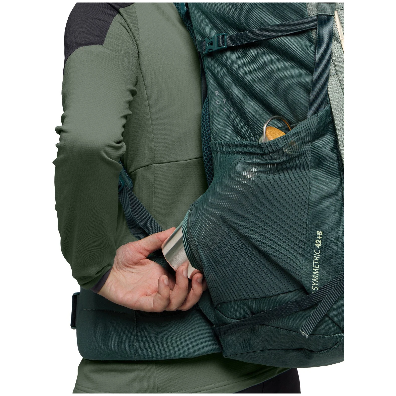 Všestranný trekingový batoh Asymmetric 42+8 značky Vaude je vhodný na túry, vysokohorskou turistiku a dálkové stezky. Objem 50 litrů kombinuje příjemný komfort z nošení. I na dlouhých túrách zajišťuje nosný systém Tergolight Comfort Space vysoký komfort nošení. Délku zad a umístění zátěže trekingového batohu lze přizpůsobit velikosti těla. Ramenní popruhy Ergoshape poskytují pažím dostatek volnosti pohybu a optimálně rozkládají váhu, stejně jako pohodlně polstrovaný bederní pás. Prostorná hlavní přihrádka je přístupná shora i zepředu. V elastické přední komoře je prostor pro vše, co potřebujete mít na cestách po ruce. Díky optimalizovanému odvětrávání přední komory zde schne i mokré oblečení. Elastické boční kapsy na láhev na pití, fotoaparát nebo ovocné tyčinky jsou přístupné bez sundání. Batoh je také užitečný na vysokohorských túrách: cepíny a hole lze připevnit na poutko na materiál a mačky atd. lze připevnit na řetízek. Dva kompresní popruhy na každé straně a jeden pod víkem. Horní popruh má náhradní přezku. Víko s vnitřní přihrádkou je výškově nastavitelné.