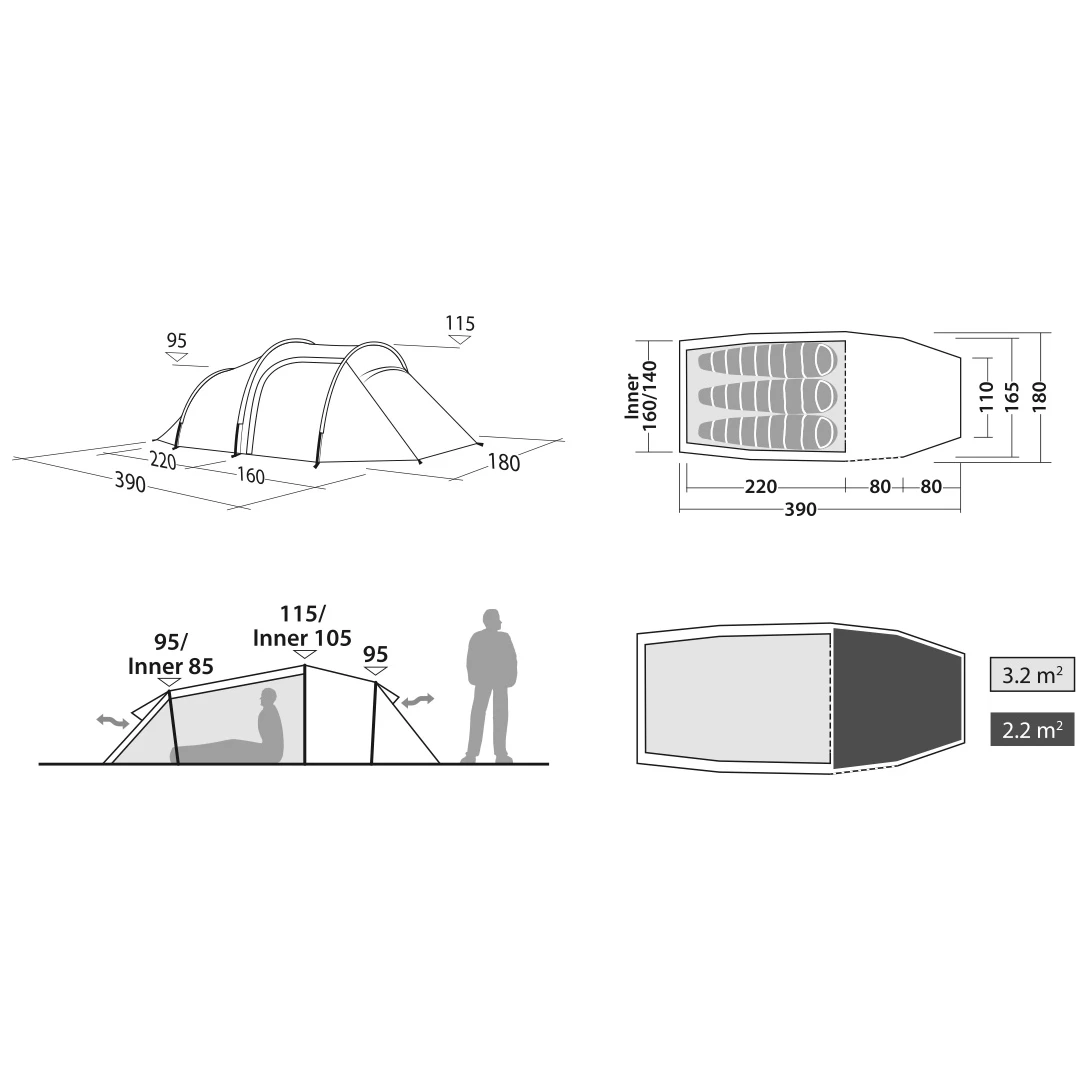 Dále se stan může pochlubit dobrou cirkulací vzduchu, za kterou vděčí prodyšnému vnitřnímu stanu, nastavitelným ventilačním otvorům a dvoucestnému zipu v horní části dveří. Uvnitř se nachází integrované síťované kapsy pro uložení drobností, místo pro zavěšení lampy a šňůra pro sušení oblečení.