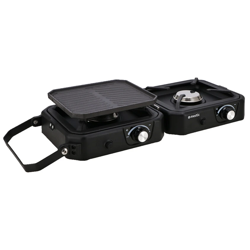 Plynový vařič Mestic MGC-150 má dvě výkonné plotny o výkonu 1,8 kW pro optimální zážitek z vaření. Díky piezo zapalování snadno získáte stabilní plamen. Stačí rozložit vařič, umístit přiloženou grilovací desku a můžete začít připravovat lahodná jídla. Pomocí šroubového nebo hadicového zapalování připojíte vařič k plynové láhvi s propanem nebo butanem. Jakmile je připojený k plynu, můžete začít vařit své oblíbené pokrmy. Při použití vždy zajistěte dostatečnou ventilaci. Po vaření je vařič snadno čistitelný a můžete ho uložit do praktické přiložené tašky.