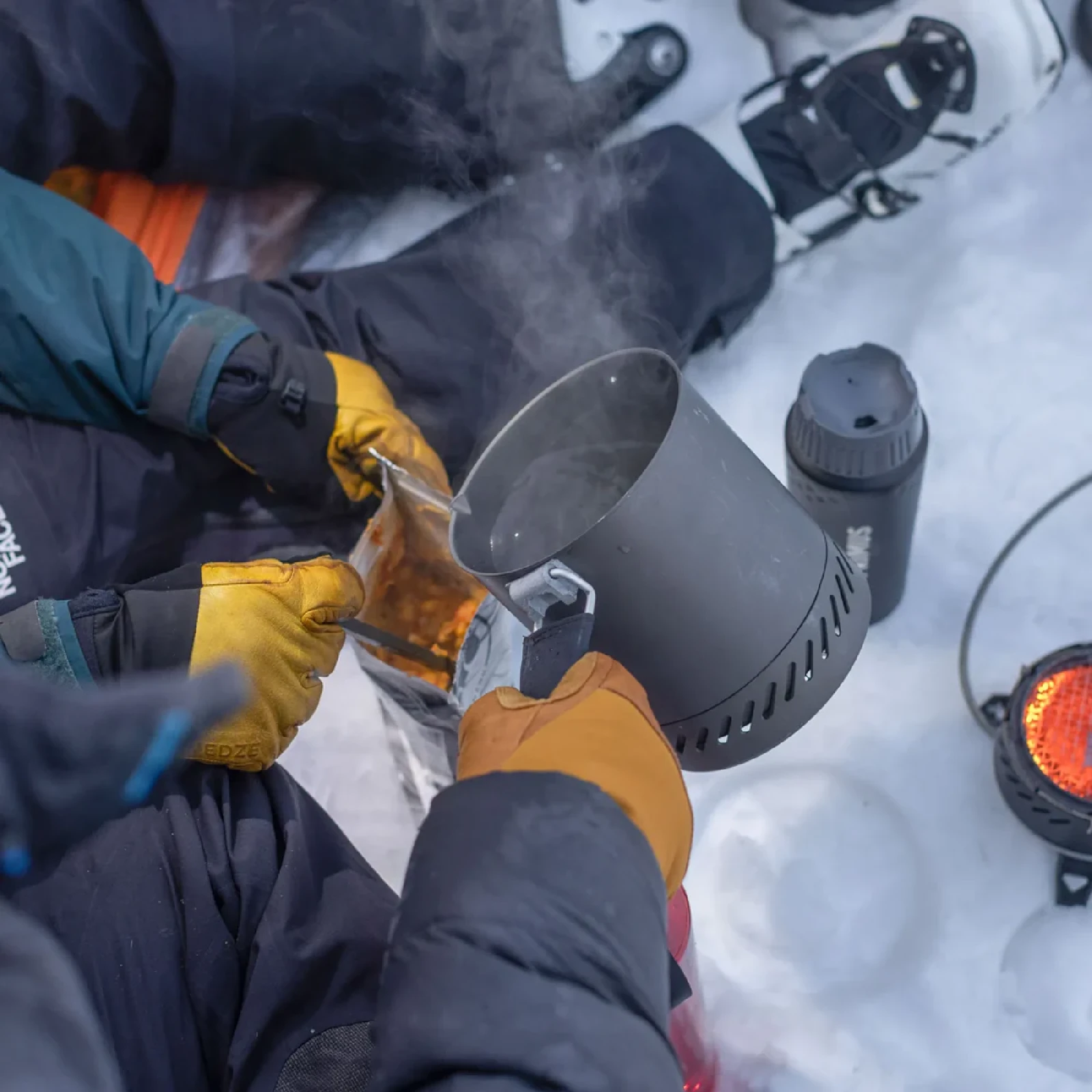 Součástí setu je 1litrový hrnec s integrovaným výměníkem tepla a praktickou výlevkou, který urychluje vaření a zvyšuje efektivitu. Hrnec i poklička jsou vyrobeny z tvrdě eloxovaného hliníku pro dlouhou životnost. Systém s oddělenou plynovou kartuší a regulátorem tlaku zajišťuje stabilní výkon i při nízkém tlaku plynu. V extrémním chladu můžete kartuši otočit pro lepší přívod paliva, vždy však dodržujte správný postup zapálení a předehřevu. Díky kompaktním rozměrům a transportnímu obalu je celý set snadno přenositelný.