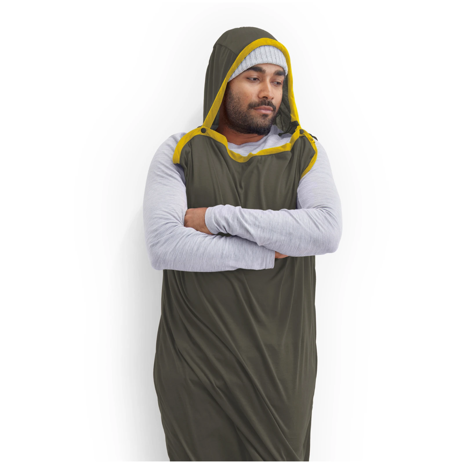 Díky strečové pletené konstrukci se vložka přizpůsobí jakékoli spací poloze a umožňuje nerušený pohyb po celou noc. Praktické otvory na ruce se zapínáním a technická kapuce zvyšují komfort a funkčnost při dlouhodobém používání.